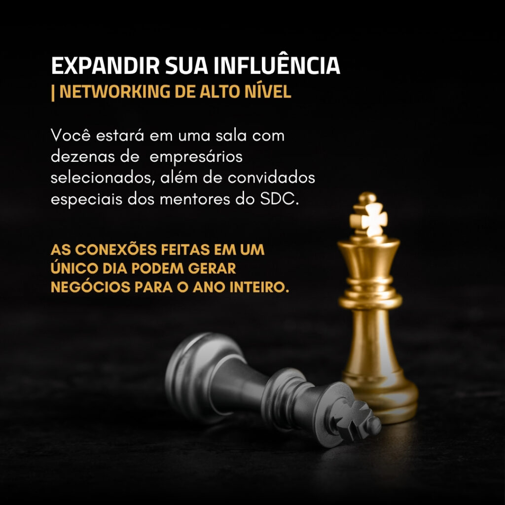Ao final do evento, apresentaremos a oportunidade de continuar a jornada conosco através da Mentoria SDC. A apresentação é opcional e o valor do seu ingresso poderá ser usado como crédito na inscrição. Nosso foco principal é entregar um dia de transformação massiva para você.